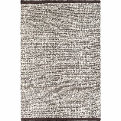 Dark Gray And Ivory Wool Striped Hand Woven Area Rug
