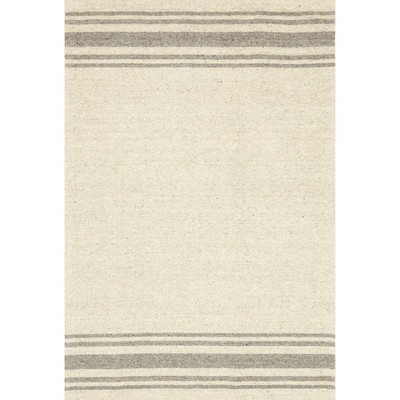 Ivory And Gray Wool Striped Hand Woven Area Rug