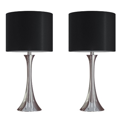 LumiSource (Set of 2) Lenuxe 24" Contemporary Metal Table Lamps Polished Nickel with Black Silk-like Shade from Grandview Gallery