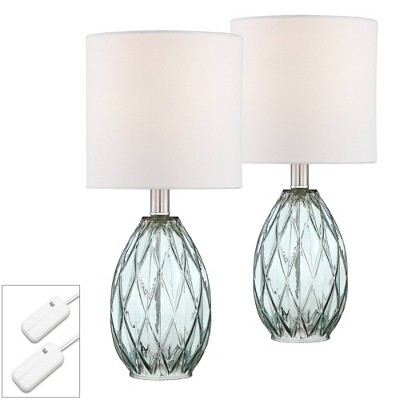 360 Lighting Rita Modern Accent Table Lamps 14 3/4" High Set of 2 Blue Green Glass with Table Top Dimmers White Drum Shade for Bedroom Living Room