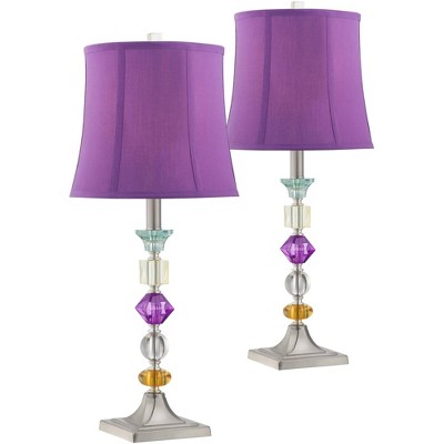 360 Lighting Bijoux Modern Table Lamps 25 1/2" High Set of 2 Clear Stacked Gem Purple Bell Shade for Bedroom Living Room Bedside Nightstand Office