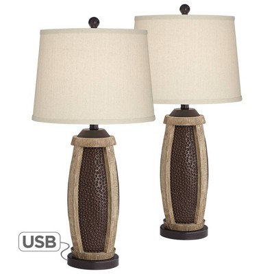 GDFStudio Briar Retro Farmhouse Resin Table Lamps with USB Ports (Set of 2)