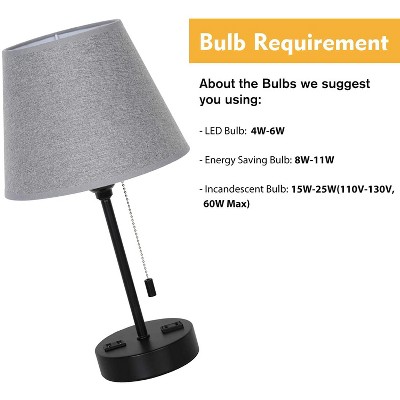 Oumilen Black Metal Table Lamp with Gray Shade, USB Ports and AC Outlet, Set of 2