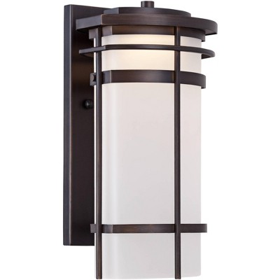 Possini Euro Design Theola Modern Outdoor Wall Light Fixture Bronze LED 12 3/4" Etched Glass Shade for Post Exterior Barn Deck House Porch Yard Patio