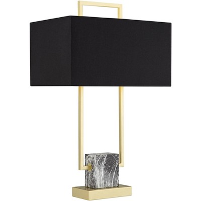 360 Lighting Carl Modern Table Lamp 24 3/4" High Gold Metal Gray Faux Marble Black Rectangular Shade for Bedroom Living Room Bedside Nightstand Office