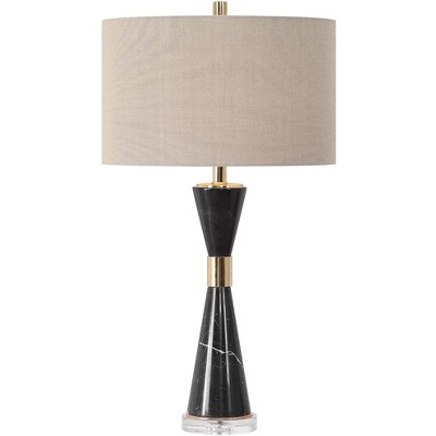 Uttermost Modern Mid Century Table Lamp 29 3/4" Tall Black Marble Beige Linen Fabric Oval Shade for Living Room Bedroom House Home
