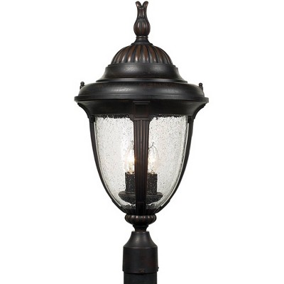 John Timberland Casa Marseille Vintage Outdoor Post Light Veranda Bronze with Pier Adaptor 28" Champagne Glass for Exterior Barn Deck House Porch Yard