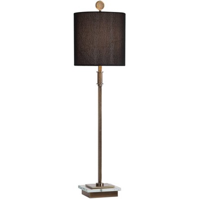 Uttermost Modern Buffet Table Lamp 33 3/4" Tall Antique Brass Black Linen Drum Shade for Bedroom Living Room Nightstand Bedside