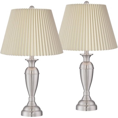 Regency Hill Blair Traditional Table Lamps 25" High Set of 2 Brushed Nickel Ivory Linen Pleat Shade for Bedroom Living Room Bedside Nightstand Office