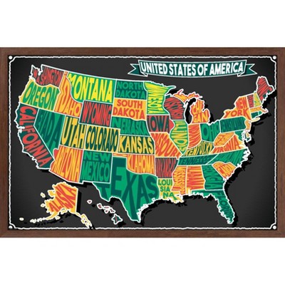 Trends International Geography - USA Map Typography Bold 26 Framed Wall Poster Prints