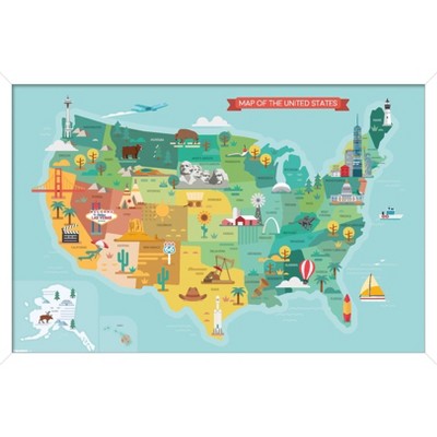 Trends International Geography - USA Map Animals And Icons 26 Framed Wall Poster Prints