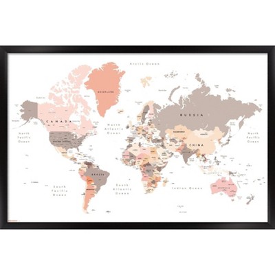 Trends International Geography - World Map Neutral Earth Tones 26 Framed Wall Poster Prints