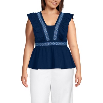 Lands' End Women's Lightweight Jersey Ruffle Peplum Top