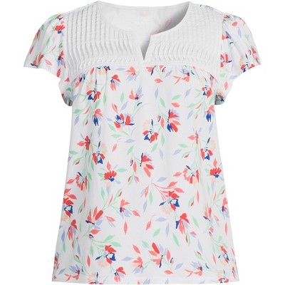 Lands' End Women's 3/4 Sleeve Cotton Slub Lace Trim Top
