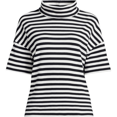 Lands' End Women's Elbow Sleeve Supima Cotton Relaxed Turtleneck