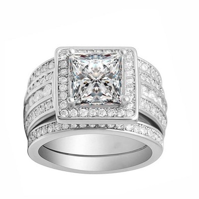 Paris Bridal Set 3pc Halo Cz Engagement Ring Bands Womens Ginger Lyne Collection