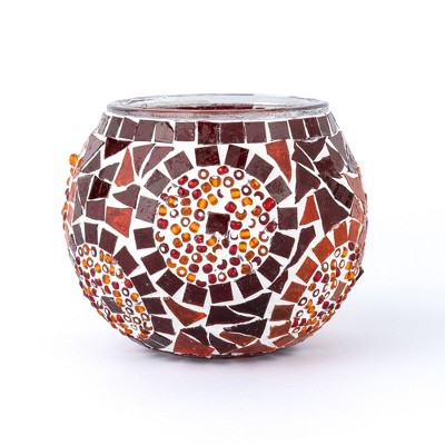 Kafthan 3.4 in. Handmade Ecru and Brown Mosaic Glass Votive Candle Holder