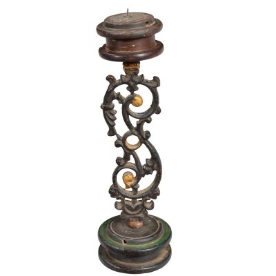 HomeRoots 29" Gold Distressed Solid Wood Tabletop Taper Candlestick