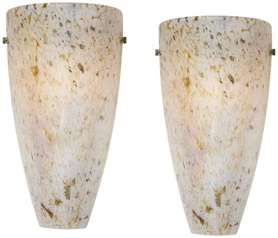 Possini Euro Design Deco Modern Wall Light Sconces Set of 2 Brushed Nickel Hardwire 13 3/4" Fixture Marbleized Glass for Bedroom Bathroom Vanity House