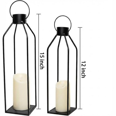 LumaBase Metal Lantern with Battery-Operated Candle - Black Tapered