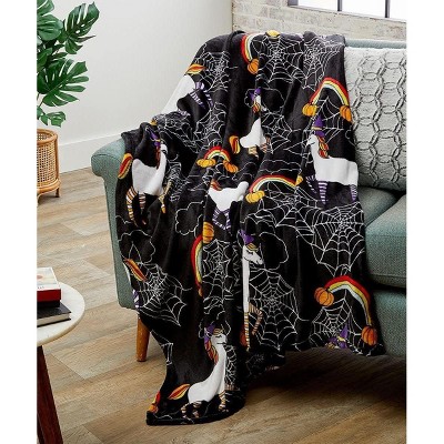Kate Aurora Trick or Treat Halloween Unicorns, Pumpkins & Spider Webs Ultra Soft & Plush Accent Throw Blanket - 50 in. W x 60 in. L