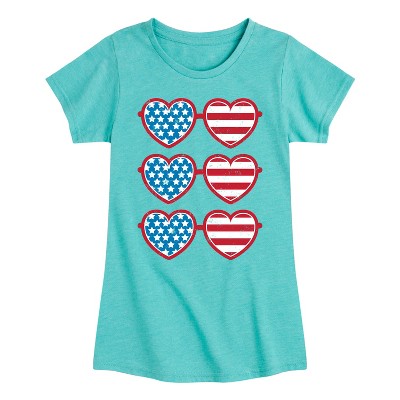 Girls' - Instant Message - Retro Sunglasses American Flag Fitted Short Sleeve Graphic T-Shirt