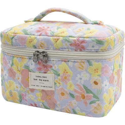 Narwey Makeup Bag,Quilted Cosmetic Bag,Large Floral Make Up Bag for Women