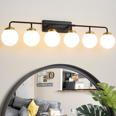 DORESshop 33 in. 5 Light Bathroom Vanity Light,Black and Gold Light with Clear Glass Shade, Black Wall Sconce for Bathroom,Bedroom