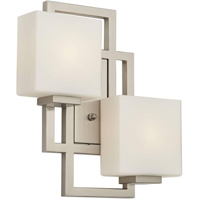 Possini Euro Design Modern Wall Light Sconce Brushed Nickel Hardwired 15 1/2" 2-Light Fixture Square Opal Glass Bedroom Bathroom