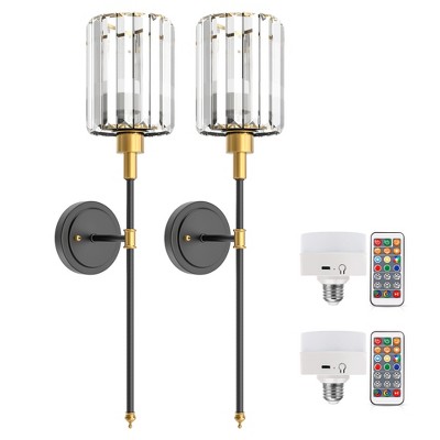 DORESshop 5 in. 1-Light 2-Pack Black Gold Crystal Wall Sconces, Modern Wall Lights for Bedroom, Mirror, or Bathroom Vanity