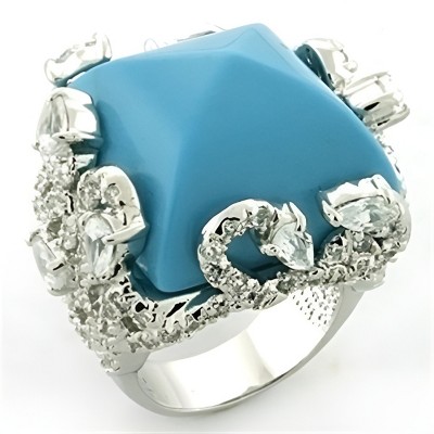 Slickblue Sea Blue Synthetic Turquoise Brass Ring with Rhodium Finish - Stylish Women's Jewelry, Size 5-9