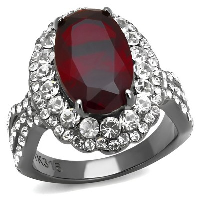 Slickblue Women’s Ring with Siam Synthetic Glass and Clear Stones, Light Black Finish, Oval Halo Style, Sizes 5-7