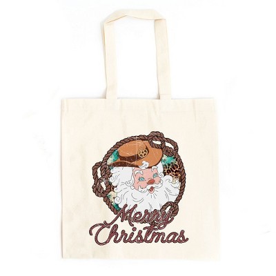 City Creek Prints Western Santa Canvas Tote Bag - 15x16 - Natural