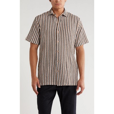 TR PREMIUM - TRSH-217 Stripe Knit Short Sleeve Button-Up Shirt