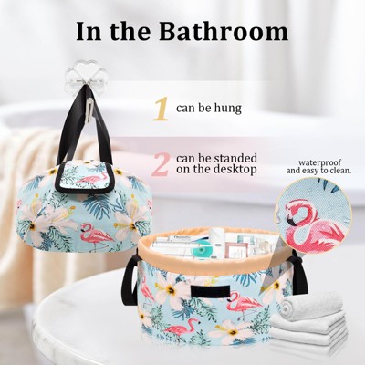 Narwey Large Barrel Drawstring Makeup Bag,Travel Makeup Bag,Portable Flamingo Cosmetic Bag