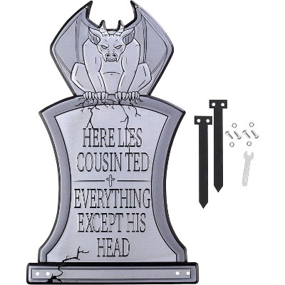 3D Metal Halloween Ghost Tombstone- Cousin Ted- (Large 17" w Stakes) Durable, Weather Rust Proof- Upgrade Lawn Decor- No Foam Graveyard Headstones