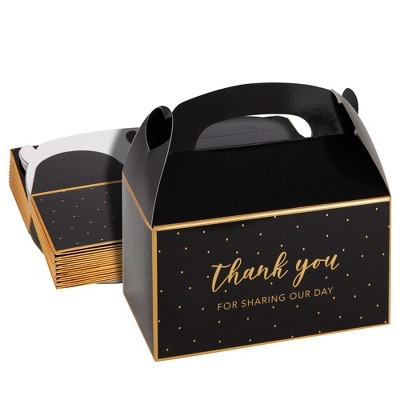 Blue Panda 24 Pack Black and Gold Thank You Party Favor Gable Gift Boxes for Wedding, Birthday Party, 6.3 x 3.5 x 3.5 In