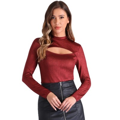 INSPIRE CHIC Women's Mock Neck Long Sleeve Cutout Glitter Party Top