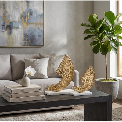 Sculptures Metal Aluminum Abstract Lemon Shape with Marble Base for Home Office Decor Set of 2 - 10", 8" Gold & Metallic