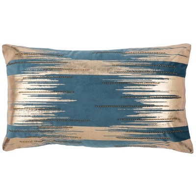 14"X26" Oversized Geometric Poly Filled Lumbar Throw Pillow Silver/Gold - Rizzy Home: Abstract Canvas, Hidden Zipper, Modern Decor