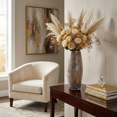 Elegant Metallic Glass Vase - Tall Glam Decorative Centerpiece with Aluminum Accent for Home, Office, Bedroom & Living Room - 24" Gold