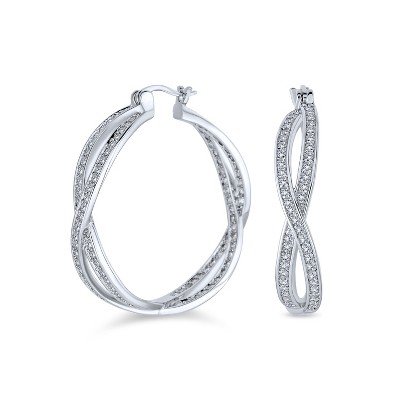 Bling Jewelry Cubic Zirconia Pave CZ Forever Love Knot Large Infinity Hoop Earrings 1.5 Diameter Silver
