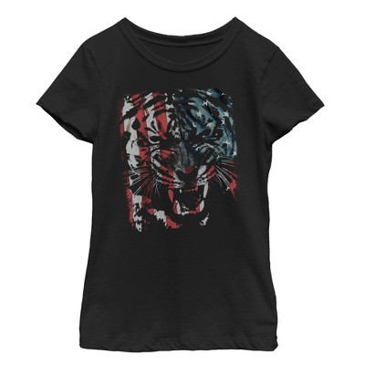 Girl's Lost Gods Tiger Growl American Flag T-Shirt