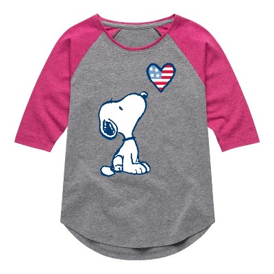 Girls' - Peanuts - Snoopy Since 1776 Flag Heart Fitted Short Sleeve Graphic T-Shirt