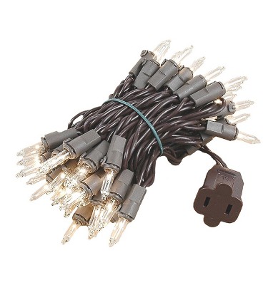 Novelty Lights 11 Feet 50 Bulbs Incandescent Mini Lights, Clear on Brown Wire with 2.5" Spacing, UL Listed for Indoor/Outdoor Use, Connectable