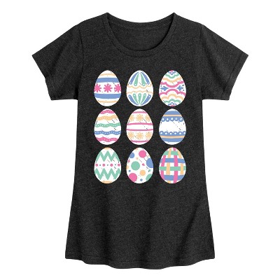 Girls' - Instant Message - Mixed Patterned Easter Eggs Fitted Short Sleeve Graphic T-Shirt