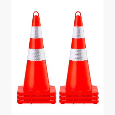 45" Orange Delineator Posts (6-Pack) - Reflective Traffic Cones with Heavy-Duty Bases for Driving Practice, Construction & Parking Safety