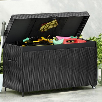 Akoasm 46.1 in. W 113-Gallon Wicker Outdoor Patio Storage Bin for Indoor Use, Pool Supplies & Gardening Tools-Dark Gray