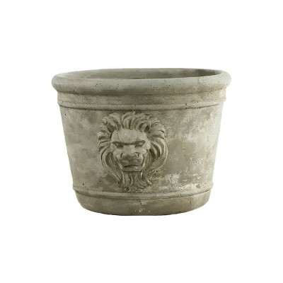 LuxenHome Concrete-Look Planter – Gray Round MgO Pot with Drainage Hole