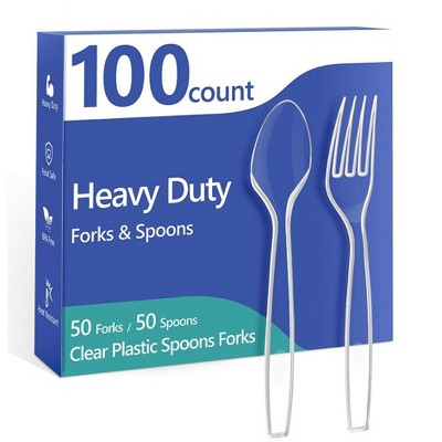 Itopfox 100-Pack Heavy Duty Plastic Silverware Set - 50 Forks & Spoons BPA-Free, Heat Resistant Disposable Utensils for Parties, Events, Everyday Use